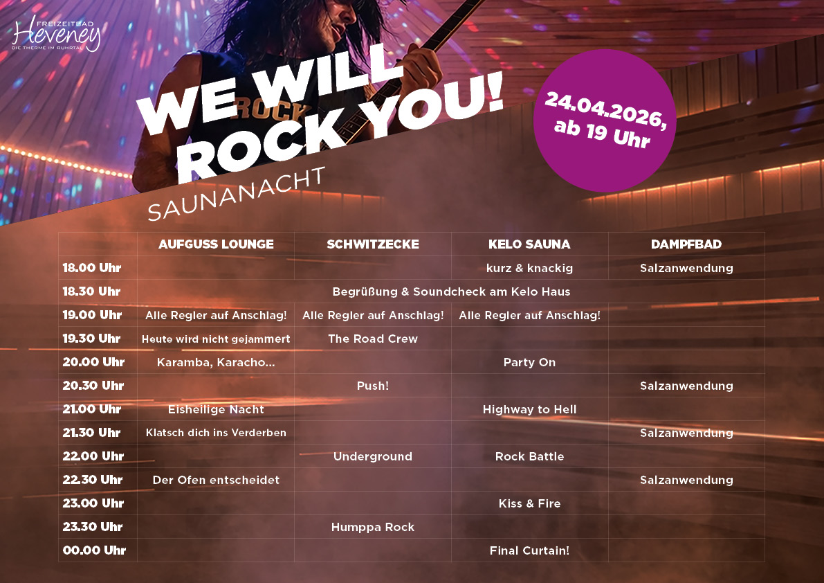 Freitag, Samstag letzter Aufguss 22.00 Uhr