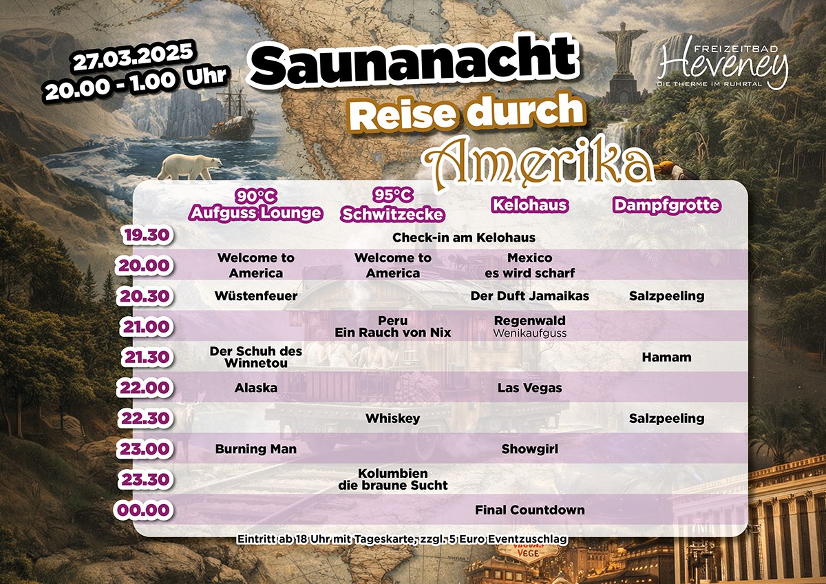 Freitag, Samstag letzter Aufguss 22.00 Uhr